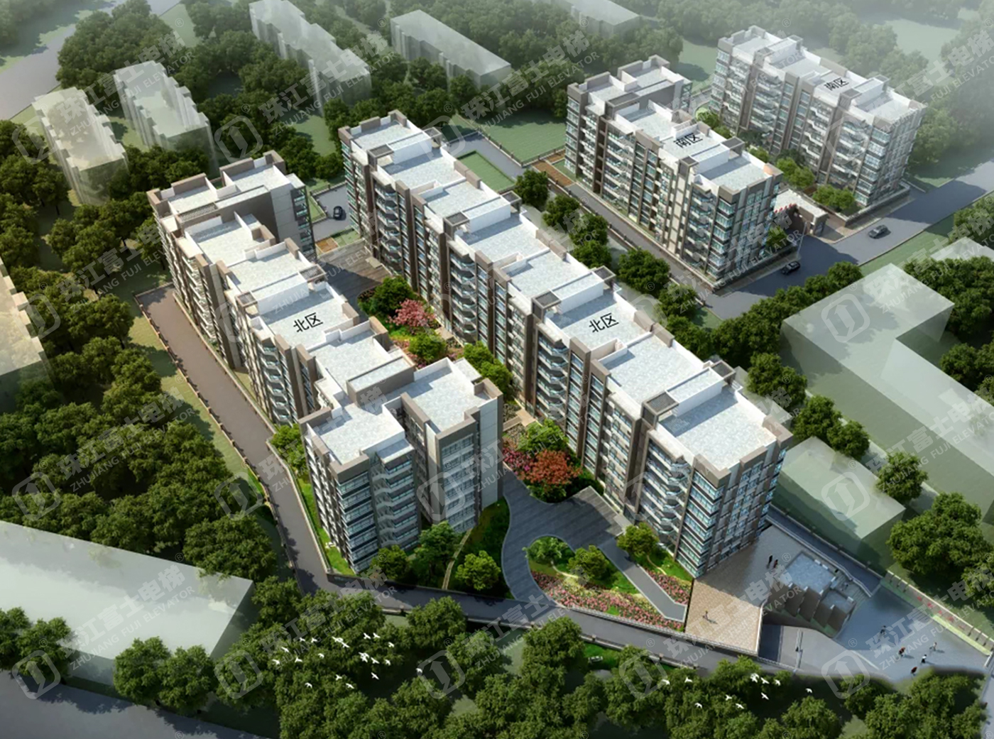 珠江富士電梯為該項(xiàng)目提供了11臺(tái)GSTK1050kg、1.6m/s的乘客電梯。